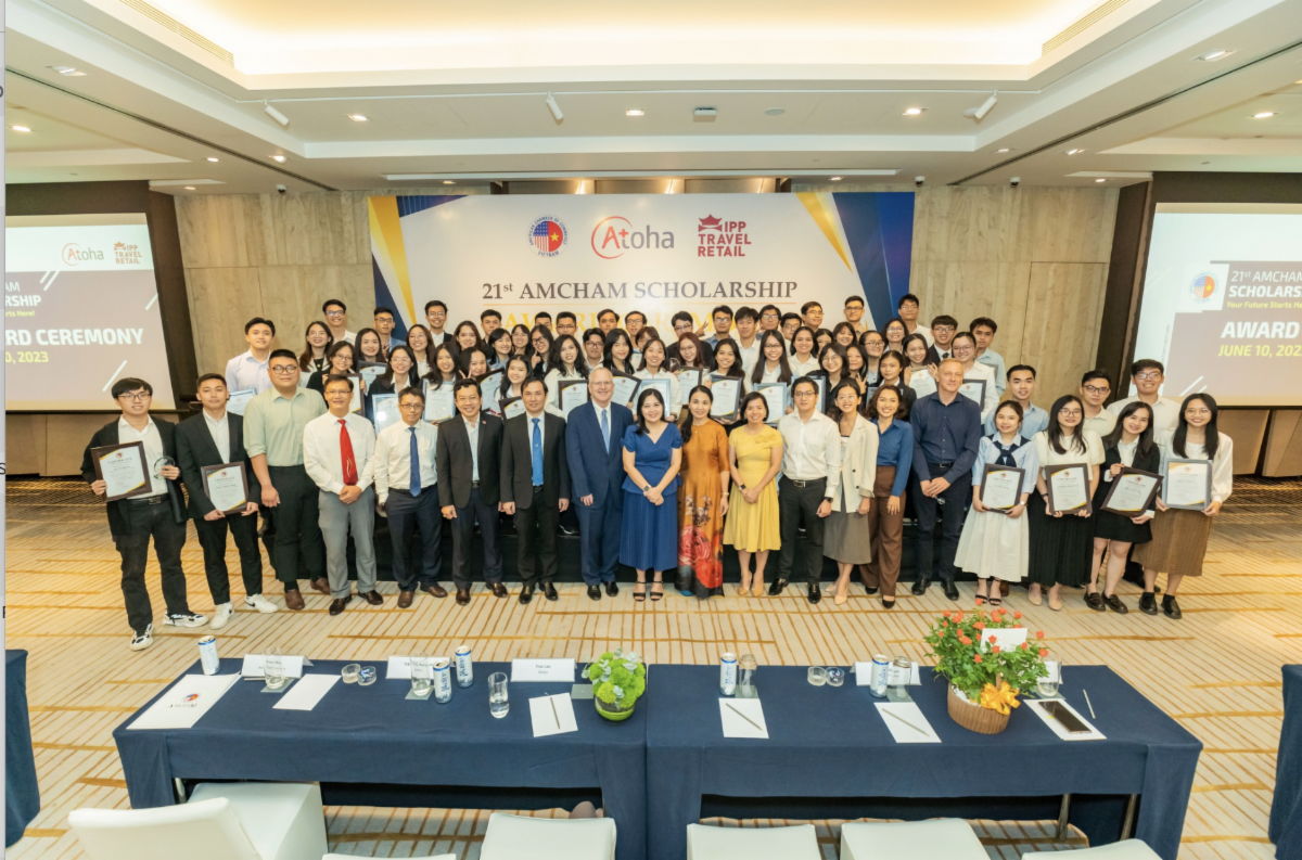 Last week, 60 deserving scholars representing 10 universities received certificates from the 21st AmCham Scholarship Program during an Awards Ceremony held in the presence of their proud families. The winners were selected among hundreds of applicants based on their skills, knowledge and behaviors in Communication, Responsibility, Problem-Solving and Leadership. The Atoha Institute and IPP Travel Retail sponsored the program, which was supported by the AmCham Scholar Alumni Group, the AmCham HR Committee, and the Vietnam Human Resources Association.