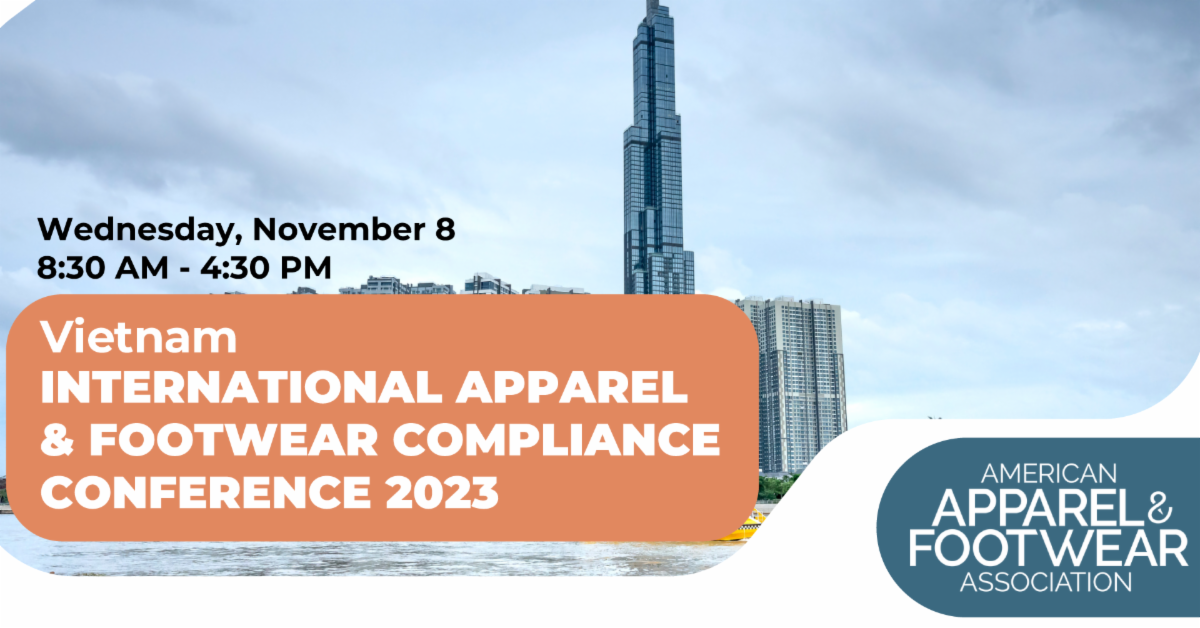 The 2023 International Apparel & Footwear Compliance Conference in Ho Chi Minh City has reached capacity. To be added to the waitlist, please email events@aafaglobal.org or contact Lily Nguyen at AmCham Vietnam for local support.