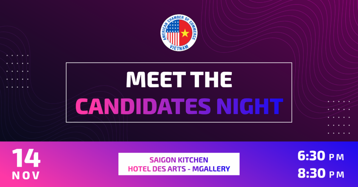 Join us for an exclusive Members-only event to meet the candidates for the 2024-2025 AmCham Vietnam HCMC Board of Governors! Meet our impressive slate of candidates, hear their visions, and network with AmCham member colleagues and friends. No entry-fee to join.