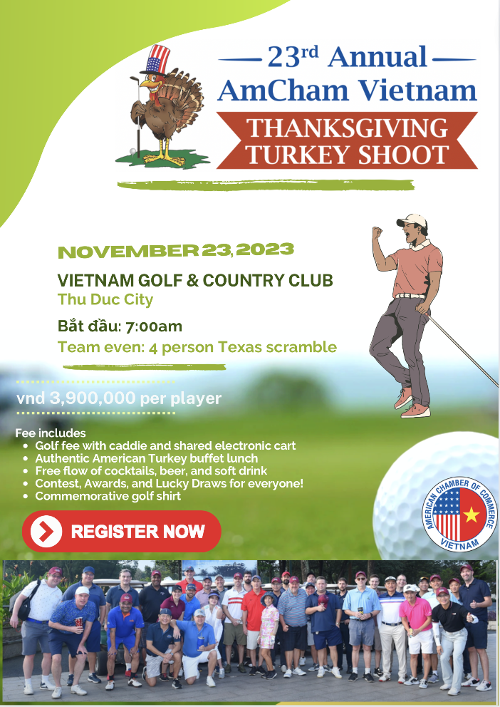 Enjoy a delicious traditional Thanksgiving dinner with fellow AmCham Vietnam members and friends, and celebrate with senior representatives of the U.S. and Vietnamese government. Spouses and significant others are welcome. You can register to join the event. Moreover, consider becoming a sponsor of this meaningful holiday event and purchase a table for your company!