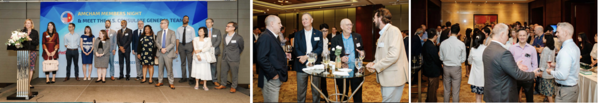 AmCham Members Night and Meet the U.S. Consulate General of 2023 was held last Monday at the Lotte Legend Saigon Hotel with a good turn-out. We were pleased to welcome Consul General Susan Burns and her team, as well as many new AmCham members at the event. Thanks to First Solar Vietnam, Coca-Cola Vietnam, Suntory PepsiCo Vietnam, and Penworld for sponsoring this evening. | | |