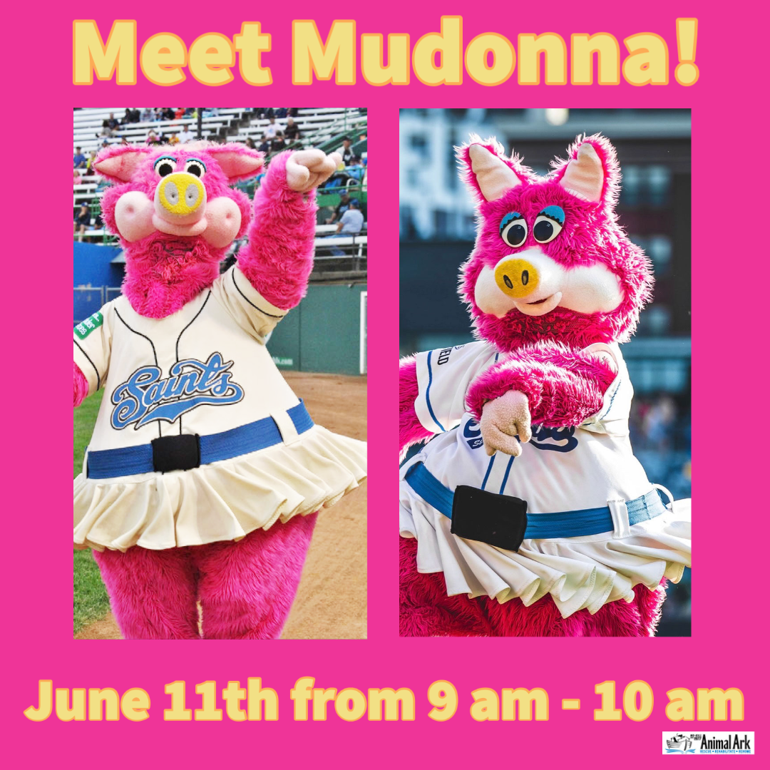 a special appearance early in the day (from 9 am to 10 am) by the diva of the diamond, the one, the only MUDONNA! The official mascot of the Saint Paul Saints!