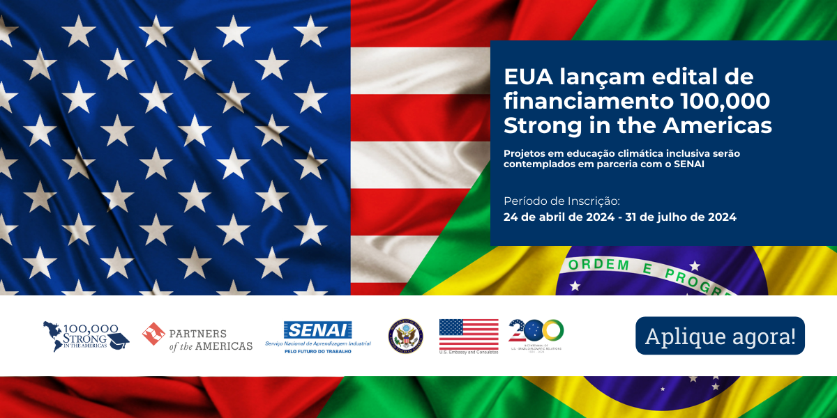 The 100,000 Strong in the Americas Innovation Fund is pleased to announce the launch of the United States-Brazil Climate/Inclusive Education Grant Competition (100K Strong U.S.-Brazil CLIMA/IE). This new grant competition is generously supported by the U.S. Mission-Brazil, and Brazil’s National Service of Industrial Training (SENAI), along with the Bureau of Western Hemisphere Affairs at the U.S. Department of State.