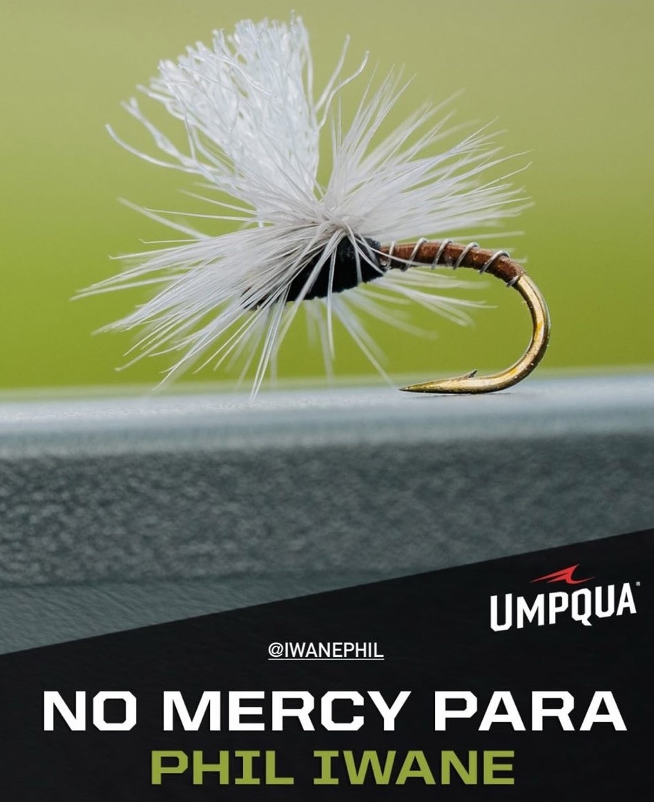 "The No Mercy Midge Parachute metamorphosed from my No Mercy Midge and this is the adult version. By tying this as a parachute on a TMC 2488 hook, with a 3x wide, 2x short shank, I was able to tie this midge as small as a size 26 and still able to see it. The advantage of this hook is that it is shorter than the standard dry fly hook and allows us to tie a smaller fly, it also has a larger gape for better hook ups and landing success.