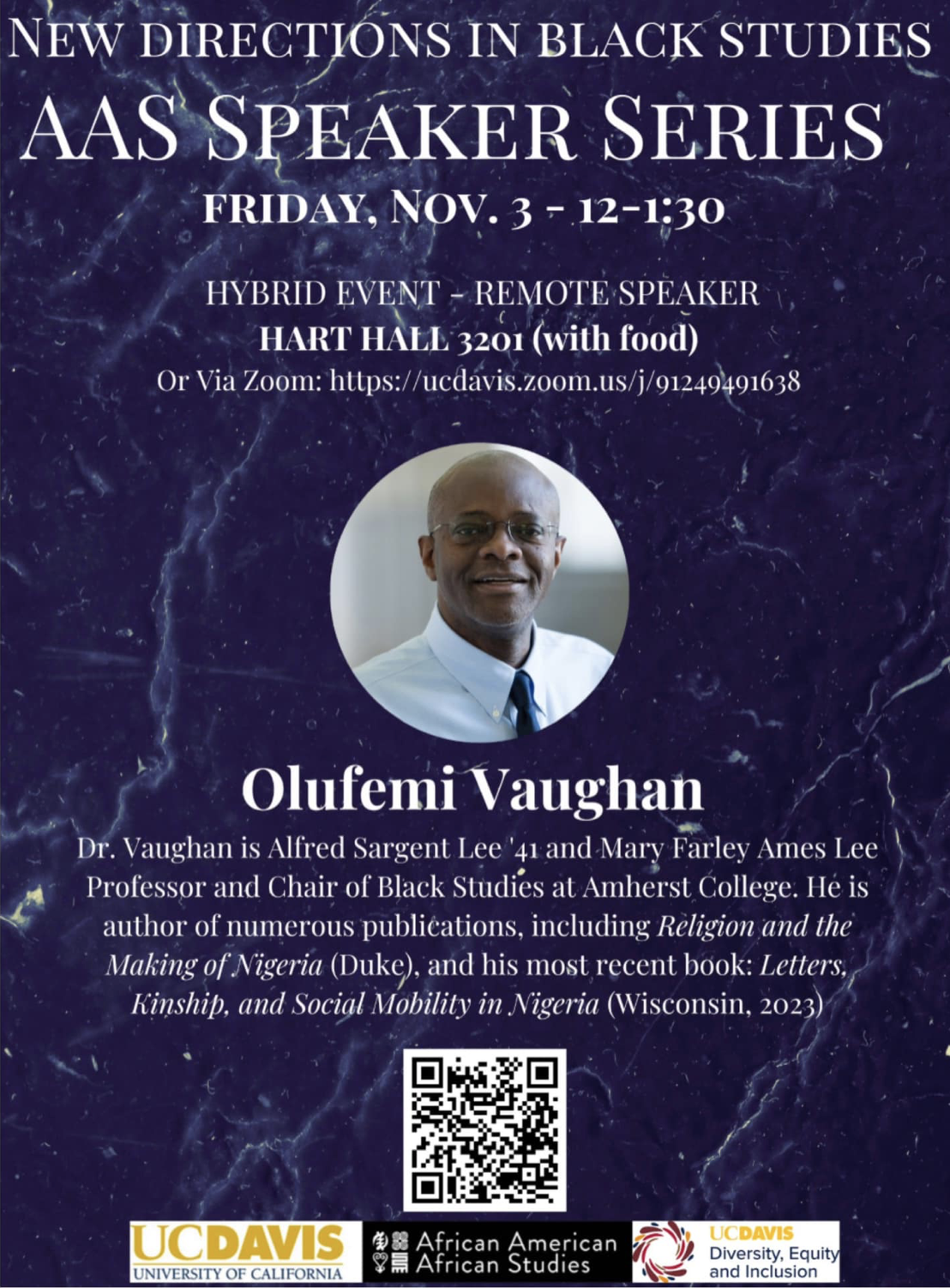 Join the UCD Department of African American Studies for the next event in their “New Directions in Black Studies” speaker series featuring Dr. Olufemi Vaughn. Food will be provided!