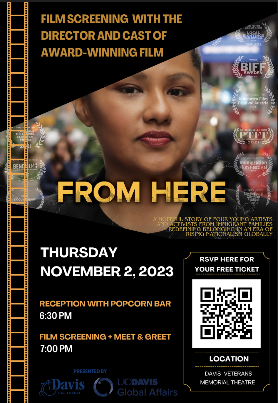 The Department of DEI for Global Affairs is hosting an event in partnership with the City of Davis Art & Cultural Affairs Program that promises to be both thought-provoking and inspiring film screening and night with the director and cast of the award-winning documentary FROM HERE.