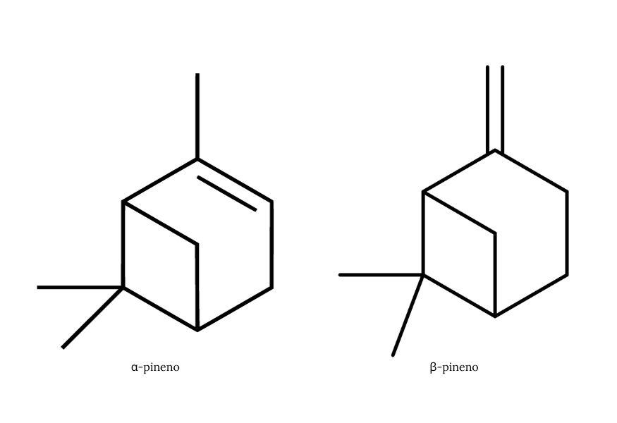 b. β-pineno: El β-pineno, también conocido como beta-pineno, es la otra forma isomérica del pineno. Tiene un aroma ligeramente diferente respecto al α-pineno, con un aroma más terroso y herbáceo.