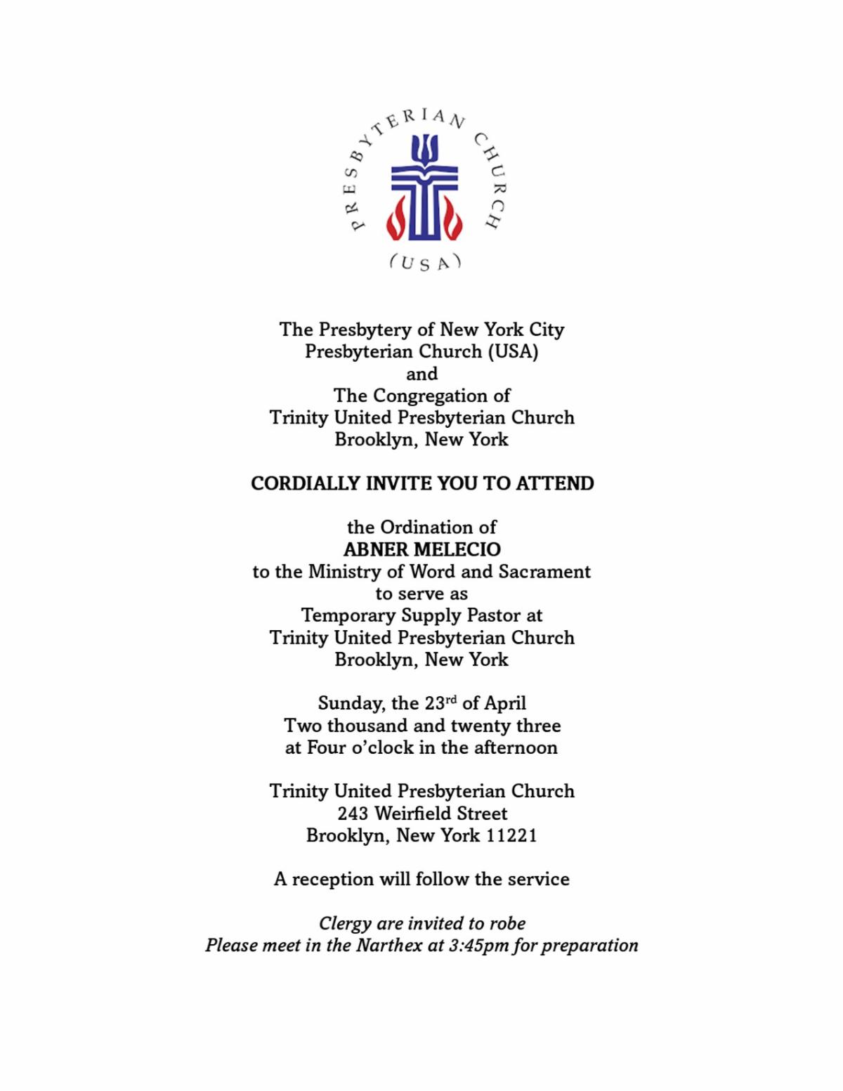 This newsletter is ordinarily published on the 2nd and 4th Friday of each month. All items for potential inclusion must be submitted via email to newsletter@presbynyc.org by noon on the Wednesday before the newsletter in published. All items are subject to review and editing. Timely submission does not guarantee inclusion.