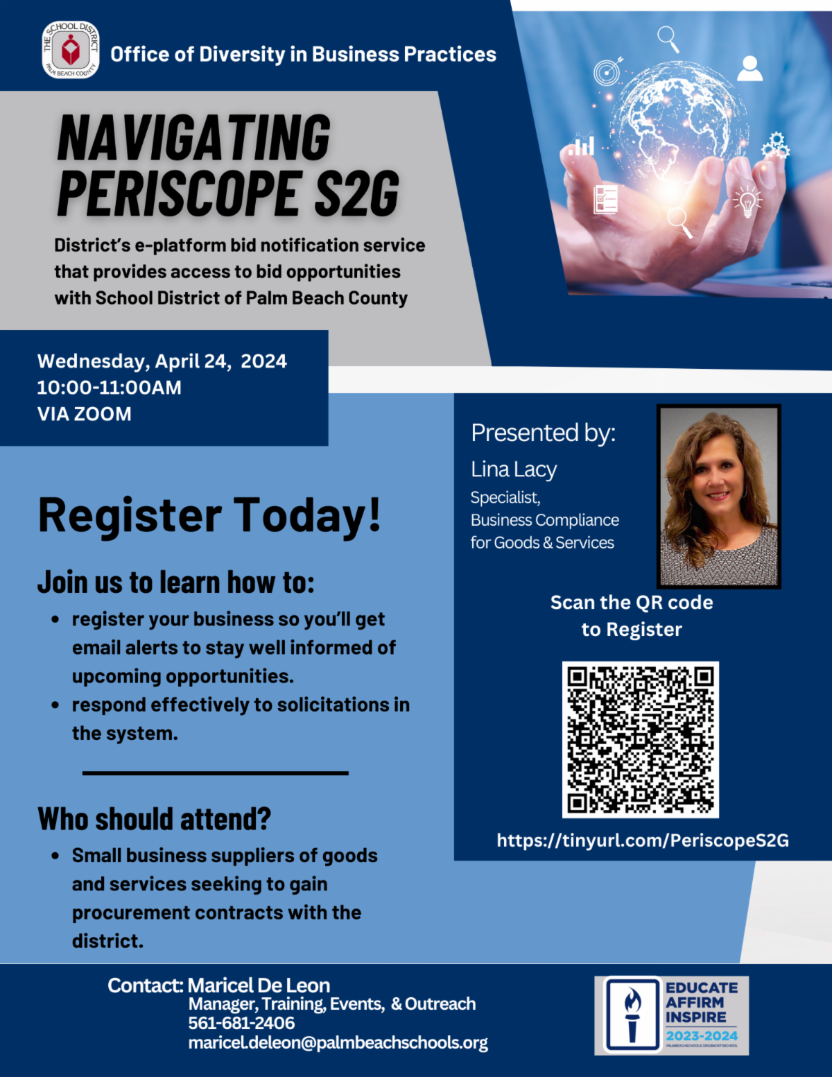 @palmbeachschools.org | | Lina Lacy | Specialist: Business Diversity | lina.lacy