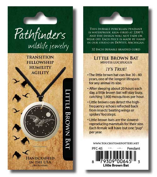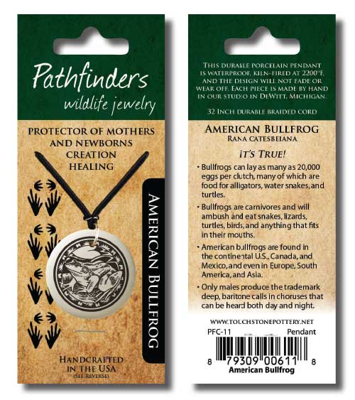 Pathfinders line of porcelain jewelry comes packaged as a hang card or in a velvet-lined box with a card describing the meaning of each design and it's animal facts. | |