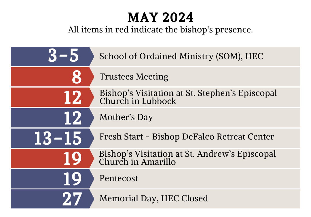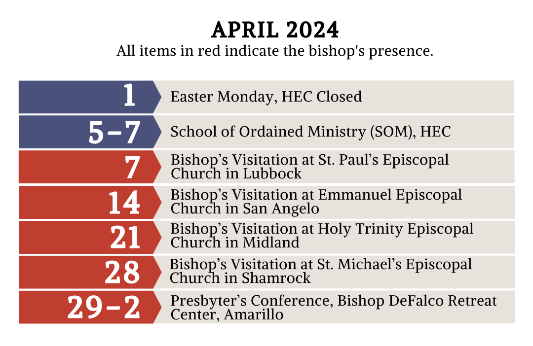 If you have any questions, please contact Mtr. Leann Wigner, Chaplain at Canterbury Episcopal Campus Ministry at Texas Tech at 575-631-5345 or ttucanterbury@gmail.com. | |