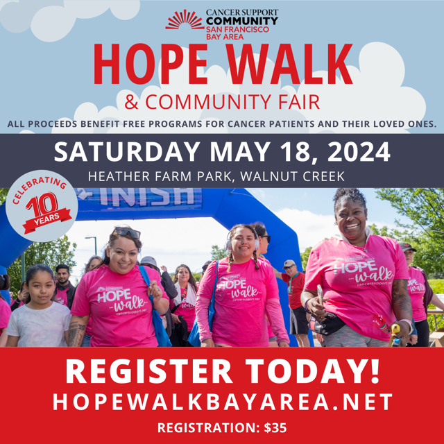Cancer Support Community's Hope Walk, is their largest community event of the year. It is coming up on Saturday, May 18 at Heather Farm Park in Walnut Creek.