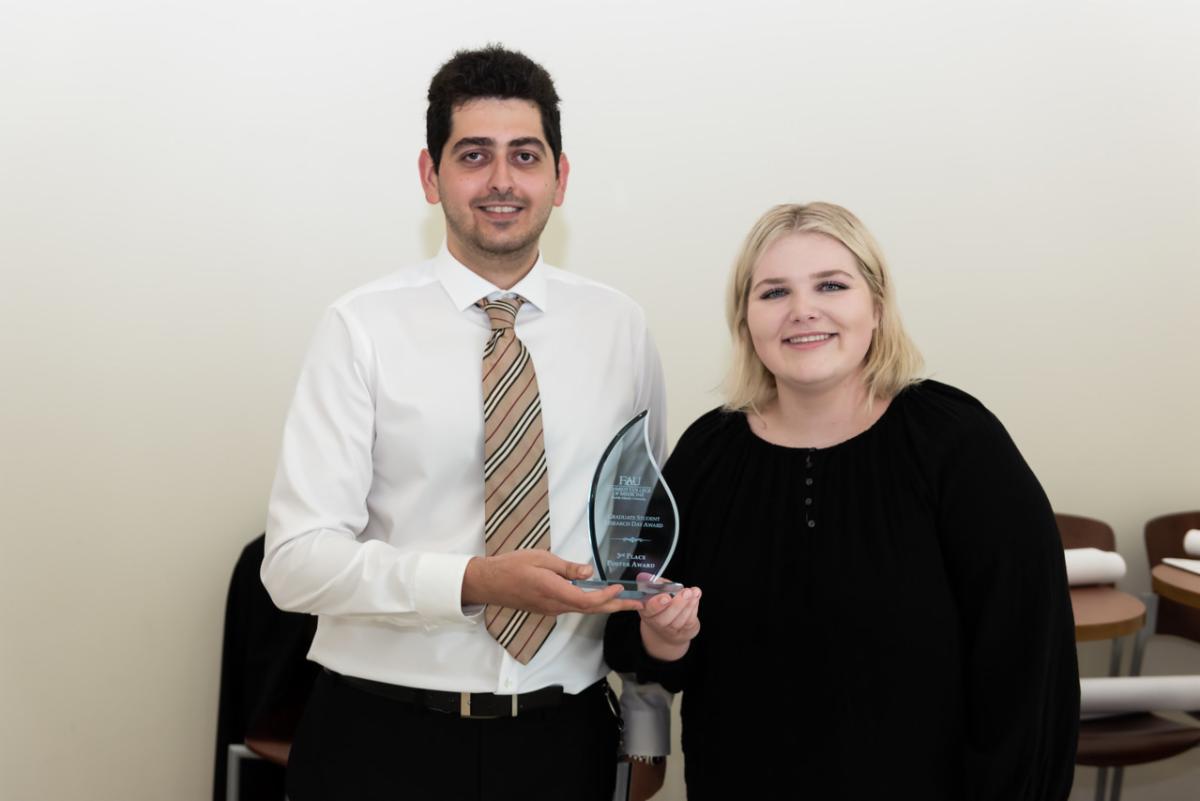 Third place was awarded to Hailee Sontag and Parsa Sartipi, an M.S. student in biomedical science and a B.S. student in biology respectively, for their poster titled, "Potential role of subventricular zone neurogenesis in the treatment of Alzheimer's Disease."