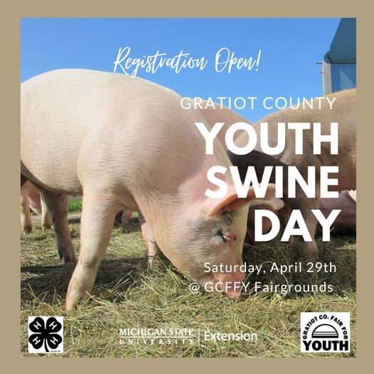 Registration is now open for Gratiot County Youth Swine Day! This all day seminar will focus on improving youth's knowledge of swine.