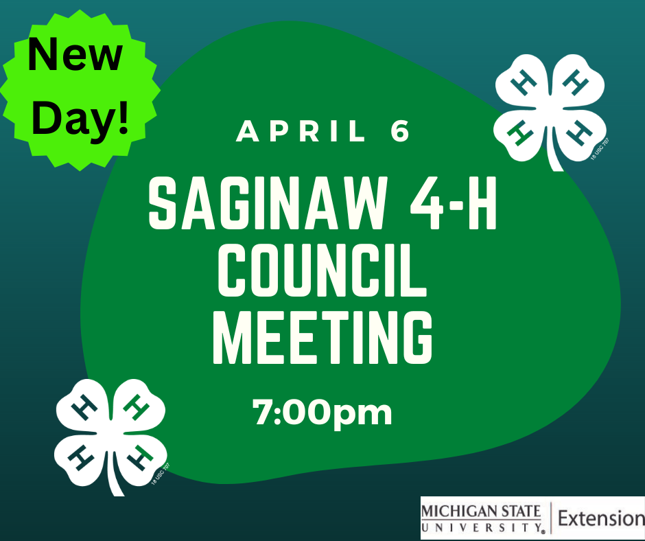 April 6: Saginaw 4-H Council Meeting 7:00pm