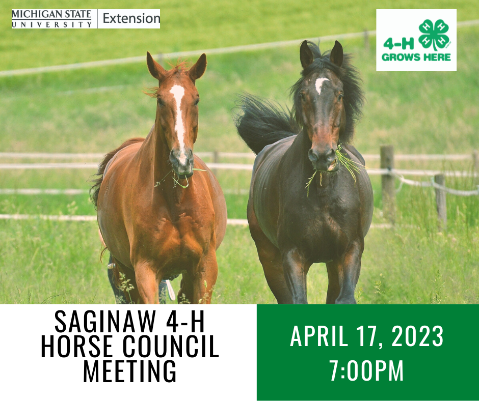 April 17: Saginaw 4-H Horse Council Meeting at 7:00pm (Hybrid-Zoom and In-person)