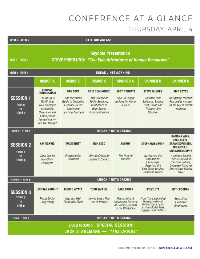 "Had a great time presenting at the Iowa Employment Conference! Nan Boland, Sarah Towns, Sue Kmet and all the other top-notch folks who make this fantastic conference happen - Thank You for allowing me to partner with you again! I'm already looking forward to the Spring conference!"