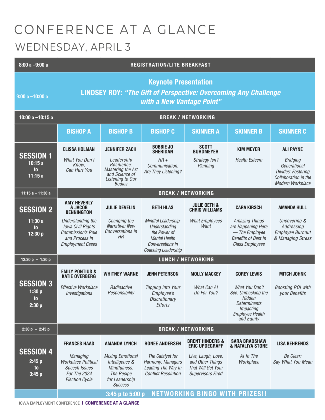 Since 2006, the Iowa Employment Conference has been THE source for classroom instruction covering topics in the areas of employment, training, benefits & wellness education.