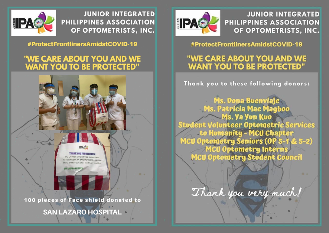 The SVOSH chapter at Manila Central University are supporting the campaign of Junior Integrated Phillippine Association Optometrist (