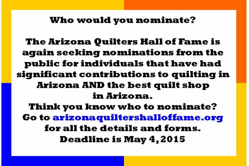 | Welcome to the March issue of Heard 'round the Hall, the e-newsletter of Arizona Quilters Hall of Fame. Like what you see here? Share this with your quilting friends by clicking on "Forward e-mail" at the bottom of the page! |
