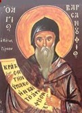 Saint Barsanuphius the Great, who was from Egypt, and his disciple, Saint John the Prophet, struggled in very strict reclusion during the sixth century at the monastery of Abba Seridus at Gaza of Palestine, and were endowed with amazing gifts of prophecy and spiritual discernment. They are mentioned by Saint Dorotheus of Gaza, their disciple, in his writings. Many of the counsels they sent to Christians who wrote to them are preserved in the book which bears their names. Once certain of the Fathers besought Saint Barsanuphius to pray that God stay His wrath and spare the world. Saint Barsanuphius wrote back that there were "three men perfect before God," whose prayers met at the throne of God and protected the whole world; to them it had been revealed that the wrath of God would not last long. These three, he said, were "John of Rome, Elias of Corinth, and another in the diocese of Jerusalem," concealing the name of the last, since it was himself.