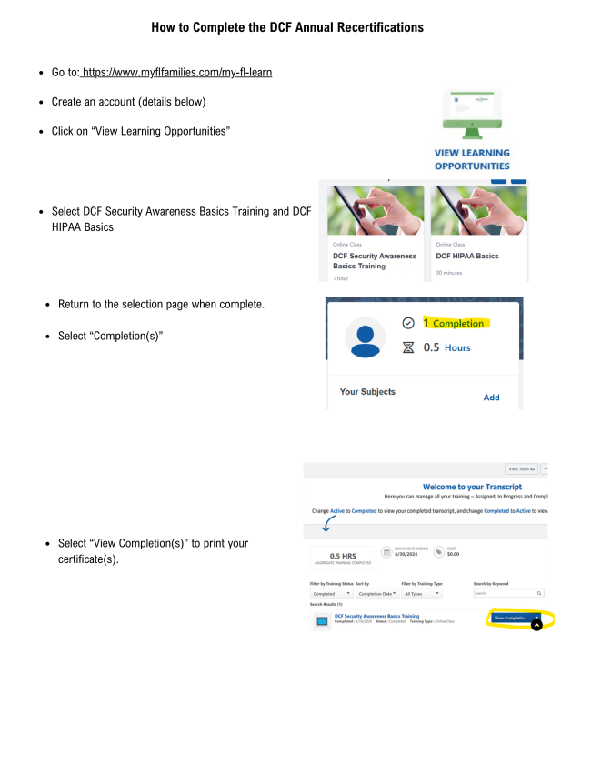 HIPAA and Security Awareness Training Instructions: