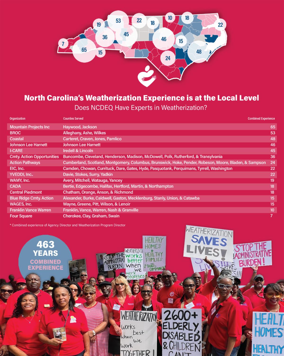 "NCCAA officials have tried to address flaws in the weatherization program with the NCDEQ, but our input is ignored," says NCCAA Board President and Mountain Projects Executive Director, Patsy Davis. "We understand federal budget cuts, but the issues are much greater - and include transparency and inconsistent funding allocations across our state. These problems started well before the 2023-2024 federal budget reductions were announced."
