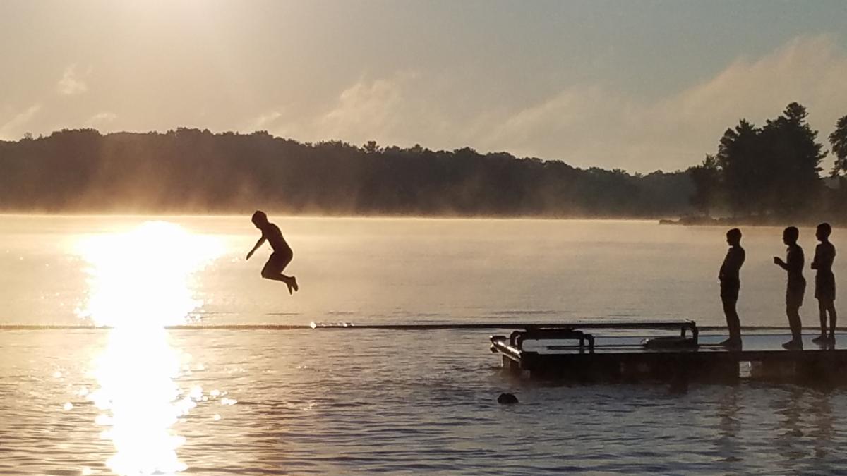 We greeted our first morning at camp with a sunrise polar bear plunge to start the day!! Followed by lots of swimming, kayaking, archery, arts and crafts, biking, bouldering, boat building, outdoor survival skills and more!
