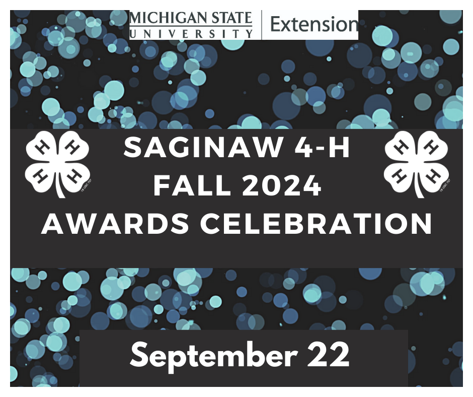 Saginaw 4-H, it’s your turn to be recognized! All Saginaw 4-H members, volunteers, friends and family are invited, including all independent 4-H members! You do not need to apply for an award to attend, all are welcome!