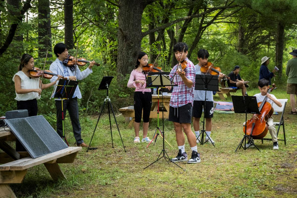 We also had several live performances from the talented students of Global Music Partnership with their teacher Vladimir. They utilized a solar-powered electric keyboard as part of their performance, and their music was carried softly across the meadow and through the forest for our guests to appreciate.
