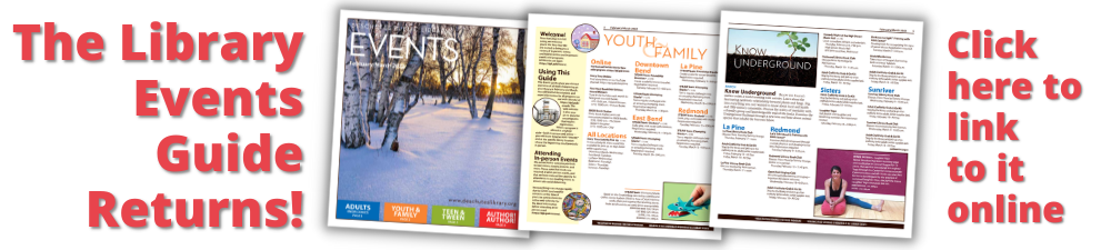 The tenth season of Deschutes Public Library Foundation’s Author! Author! literary series is in full swing, with award-winning writer Tommy Orange (There There) joining us virtually on February 3 at 7:00 p.m.; buy your ticket online at www.dplfoundation.org. The tenth season of Author! Author! concludes on March 6 with a presentation from best-selling author Neil Gaiman (American Gods, Good Omens, The Ocean at the End of the Lane). Ticket sales benefit library programs and services not funded by tax dollars.