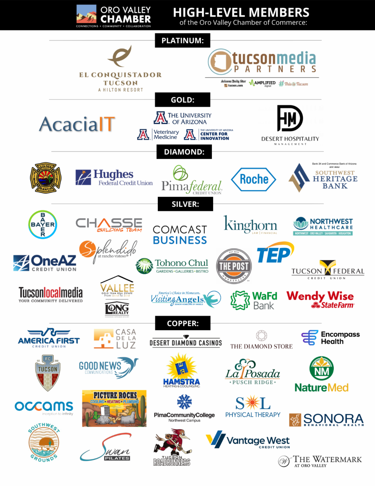 a They join incumbents Lisa Bayless of the Lisa Bayless Team at Long Realty, Lydia Camarillo of Golder Ranch Fire District, Shelby Francom of El Conquistador Tucson, A Hilton Resort, Don Pearson of Roche Tissue Diagnostics, Brian Stewart of Pima Community College, Dan Wesson of The Post Workspaces, and ex-officio board member Paul Melcher of the Town of Oro Valley.