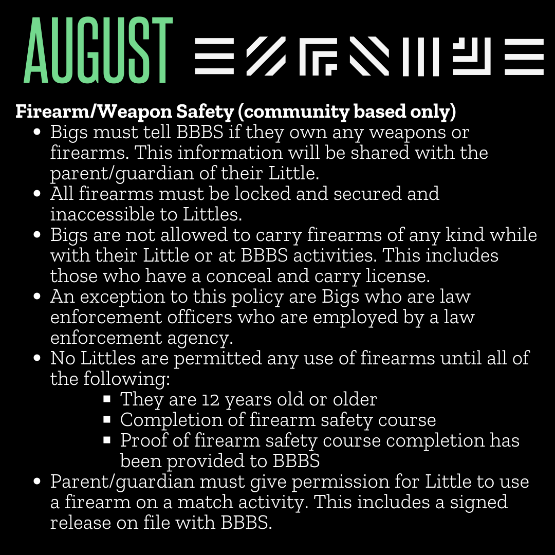 Please visit our BBBS Website to view resources and information for parents/guardians & Bigs including mentoring videos and parenting resources. We also have an extensive listing of community resources including tutors, food and housing assistance, and mental health resources. BigDefenders.org/resources