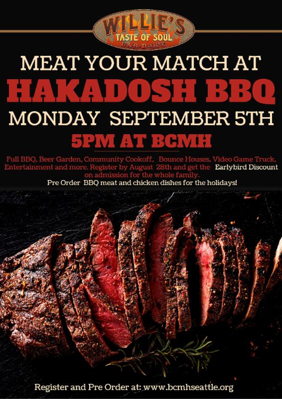 Monday, Sep. 5, 5:00 pm, BCMH Annual Hakadosh BBQ