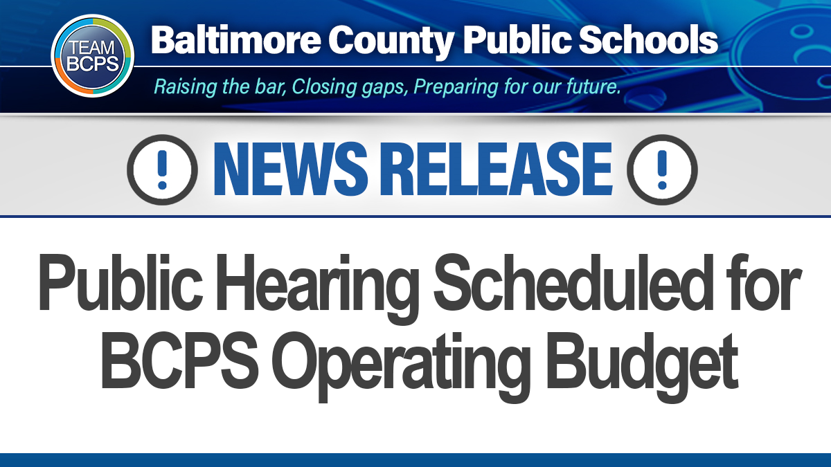The Board of Education of Baltimore County will hold a public hearing at 6:30 p.m. on Tuesday, January 17, 2023, to seek the community's input concerning the proposed fiscal year 2024 operating budget.