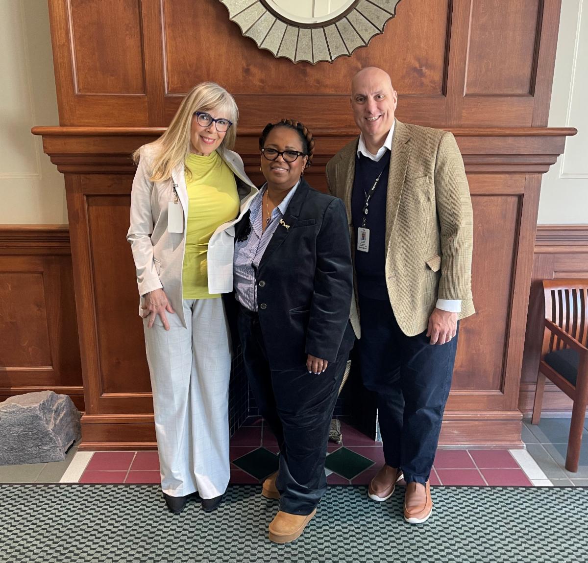 Susan Garrow-Sloan, Shemetra Owens and Michael Boland met in person for the first time at the recent gathering celebrating Dr. Paul Visintainer's retirement and Melissa Quintero's new position in Florida.