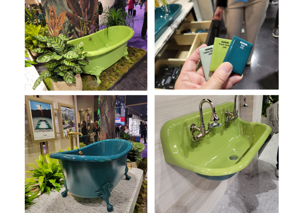 One of the trends that caught my attention was Kohler's new color collection, which featured shades of green inspired by nature. The collection included everything from sinks to tubs to toilets, all in a range of green hues. It was refreshing to see such a bold use of color.
