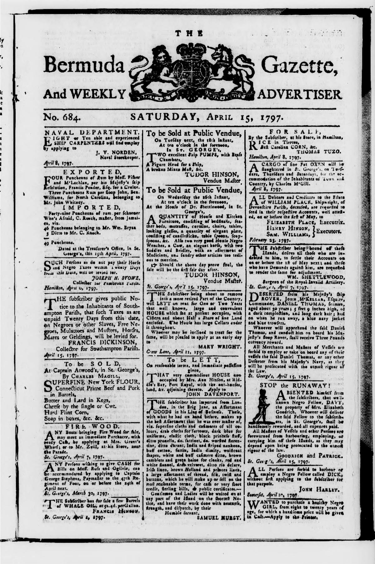 Royal Gazette & Weekly Gazeteer published 15 April 1797. | |