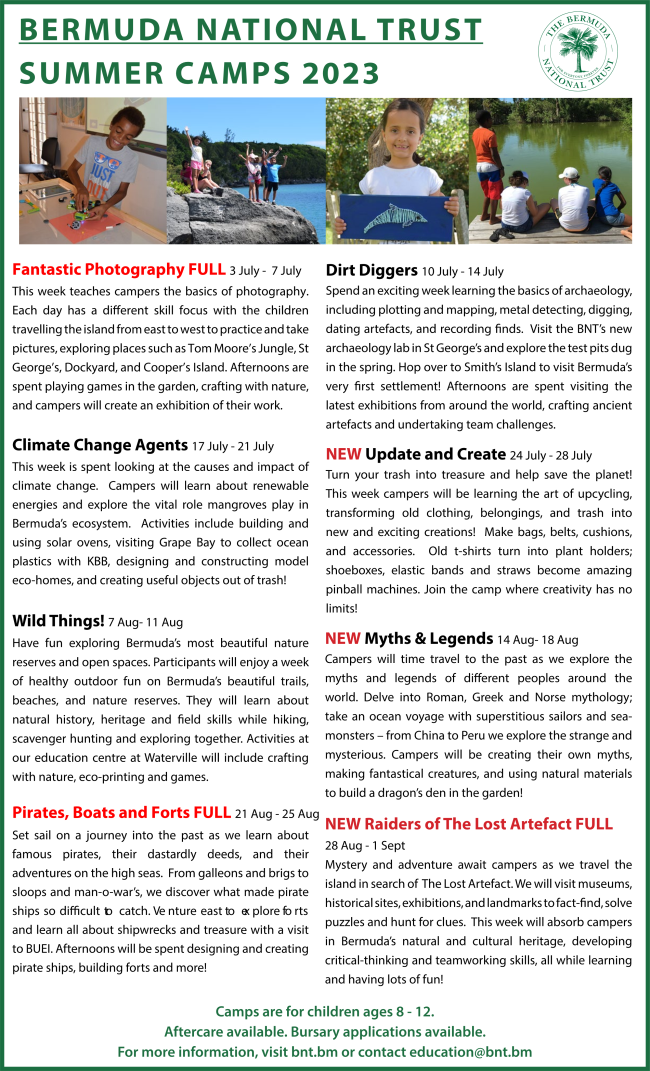 Easter Camps were a great success. Bermuda’s Natural Wonderland campers explored Cooper’s Island, Vesey Nature Reserve, Walsingham Jungle and Spittal Pond, whilst having fun and learning about habitats, eco-systems, and the island’s rich natural heritage. The children produced beautiful Easter-themed crafts and had lots of fun playing in the garden.