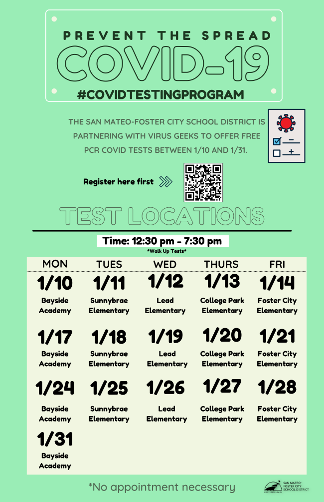 Free Covid at Home Tests:I wanted to share this resource to get four free Covid tests mailed right to your house: Free at home Covid 19 Tests I just ordered mine. Also, I wanted to share that we passed out hard copies of our Covid pool testing form and we got many more back in. Please ask your child if they got a form and return it. We want everyone in our pool, testing each week.