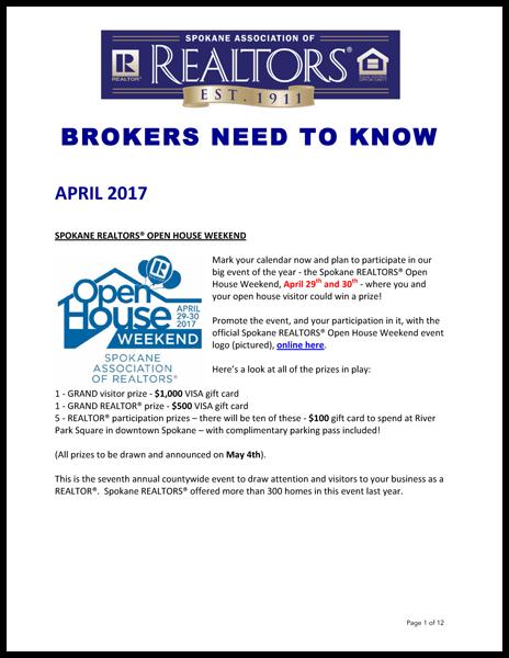 Offered here is the April edition of Brokers Need to Know. This monthly document offers cut-and-paste content for your staff meetings, culled from the past few weeks of the Weekly Notices, with breaking news as it comes in.