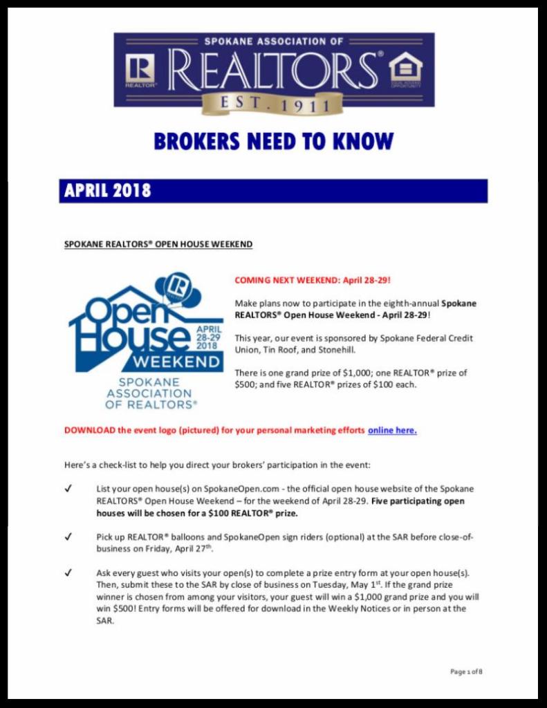 Offered here is the April edition of Brokers Need to Know. This monthly document offers cut-and-paste content for your staff meetings, culled from the past few weeks of the Weekly Notices, with breaking news as it comes in.