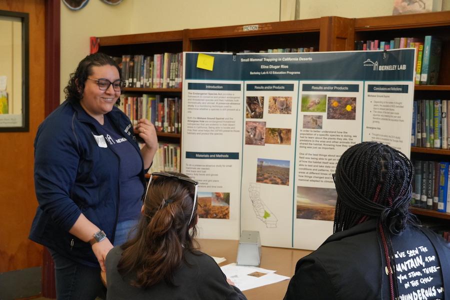 El 12 de febrero, los estudiantes de ciencia del octavo grado de Martin Luther King Jr. Middle School recibieron la visita de científicos del Lawrence Berkeley Labs y de la Universidad de Berkeley para celebrar una "Feria de la Ciencia a la inversa" en la que los científicos fueron los presentadores y los estudiantes los jueces. Los científicos prepararon tres paneles desplegables y trajeron objetos relevantes para mostrar a los estudiantes su área de estudio y sus proyectos de investigación actuales. Al mostrar a los alumnos de octavo grado los múltiples caminos que pueden seguir los adultos con conocimientos sobre “stem”, la feria es una oportunidad para inspirar a la próxima generación de científicos, ingenieros y pensadores críticos mientras se preparan para la transición a preparatoria. | |