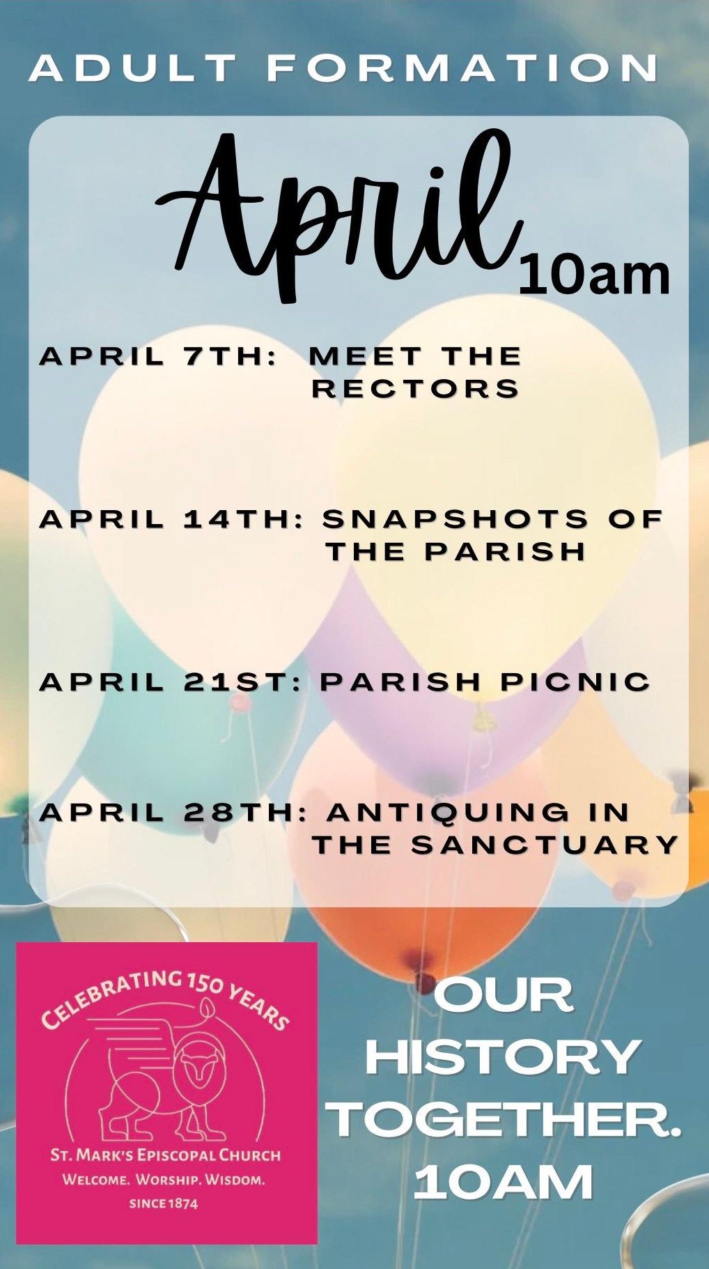 10am - St. Mark's History Adult Formation in the Parish Hall, Earth Care meeting in Library, Fiber Arts Group