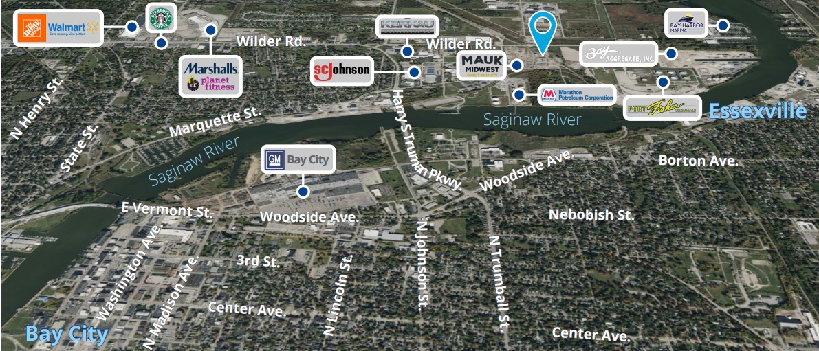 The property is located along Wilder Road within an industrial area 6 miles east of I-75 and 7 miles east of US-10 > Conveniently located within the Great Lakes Bay Region: Bay City (3.8 miles) Saginaw (20 miles) Midland (21 miles)