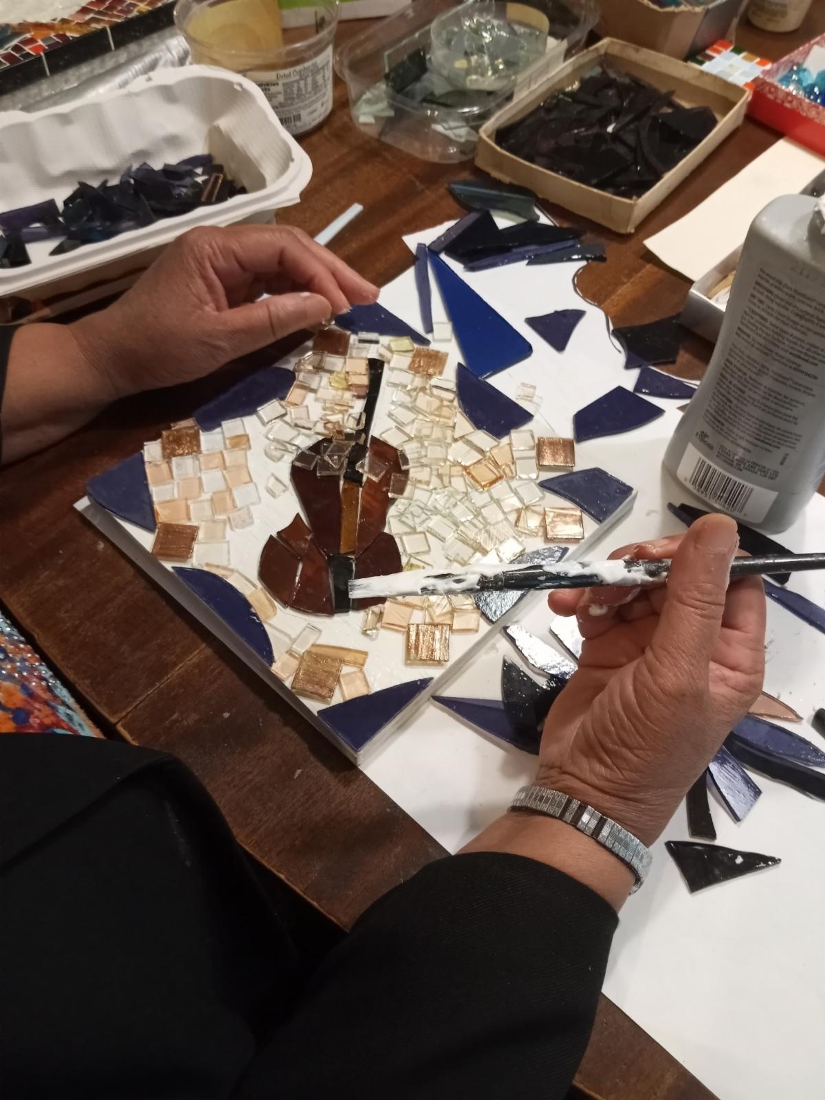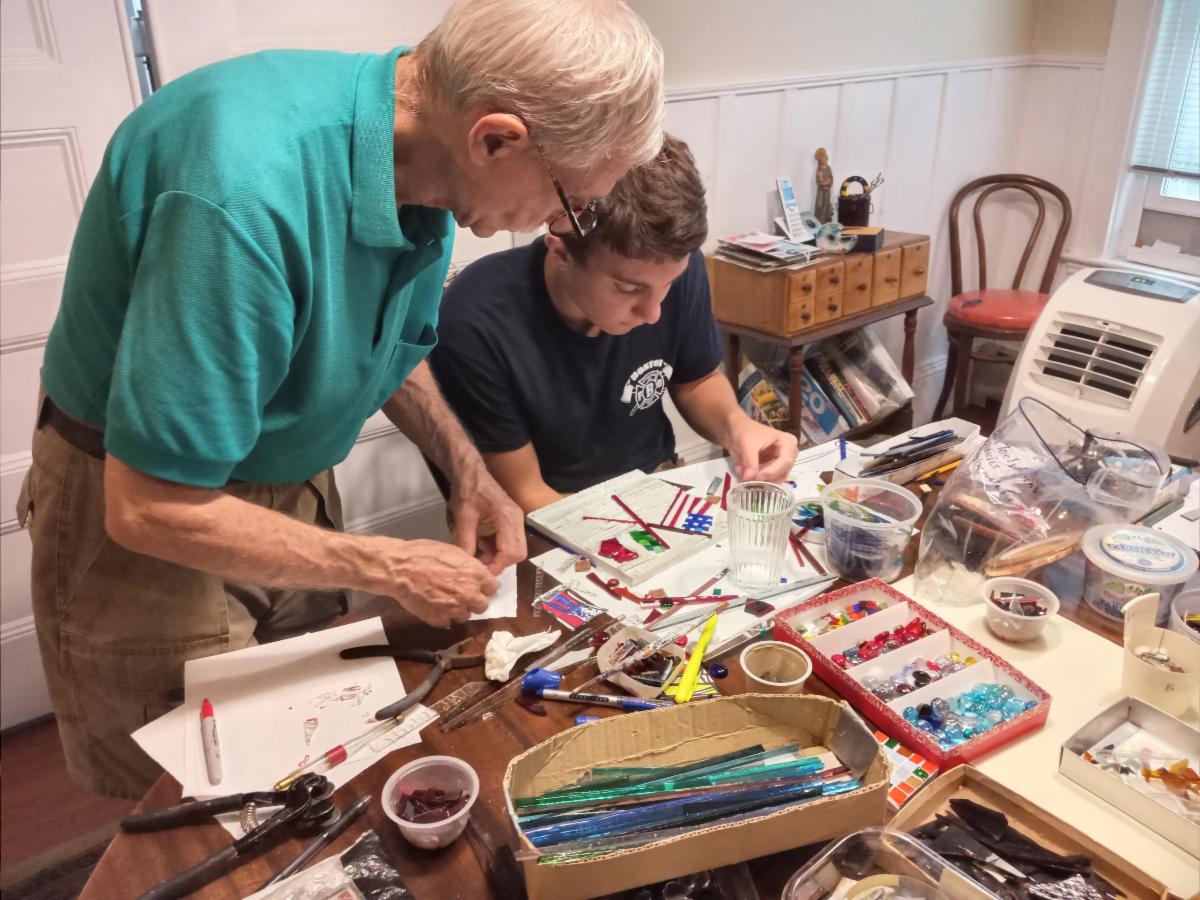 On July 22nd and 23rd, Emanuel Genovese taught a mosaic class at his home studio. Pat Bass and George Boitano joined Emanuel and Carol to learn about this ancient art and to create some of their own.