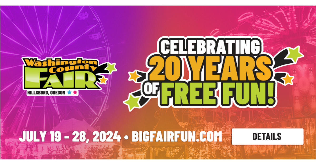 The Washington County Fair opens today July 19 at 5PM. We are celebrating 20 years of Free Fair Fun this year. That’s right, we have been offering free admission to the Washington County Fair for 20 years now! It all kicks off tonight at 5PM and will continue for 10 straight days of the BIG FAIR FUN in Hillsboro at Westside Commons. 10 days gives you plenty of time to; try all kinds of “Fair Food,” jump on some carnival rides, look at all the different animals, play some Midway games and enjoy a ton of great Live music & entertainment all day every day. There are so many FREE things to do at the Washington County Fair, check out the entire Fair Schedule. Here’s a list of just 20 Free things to do - in keeping with our 20 years of Free Fair Fun theme - at the Fair this year: