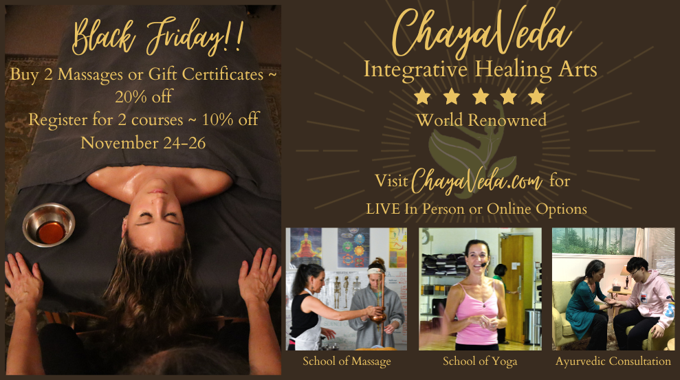 Take any of my Ayurvedic Massage & Bodywork courses in person or online and get CEU's for LMT, NCBTMB & NAMA & Marma Chikitsa is also approved for YA as well. Courses listed below and on my website.