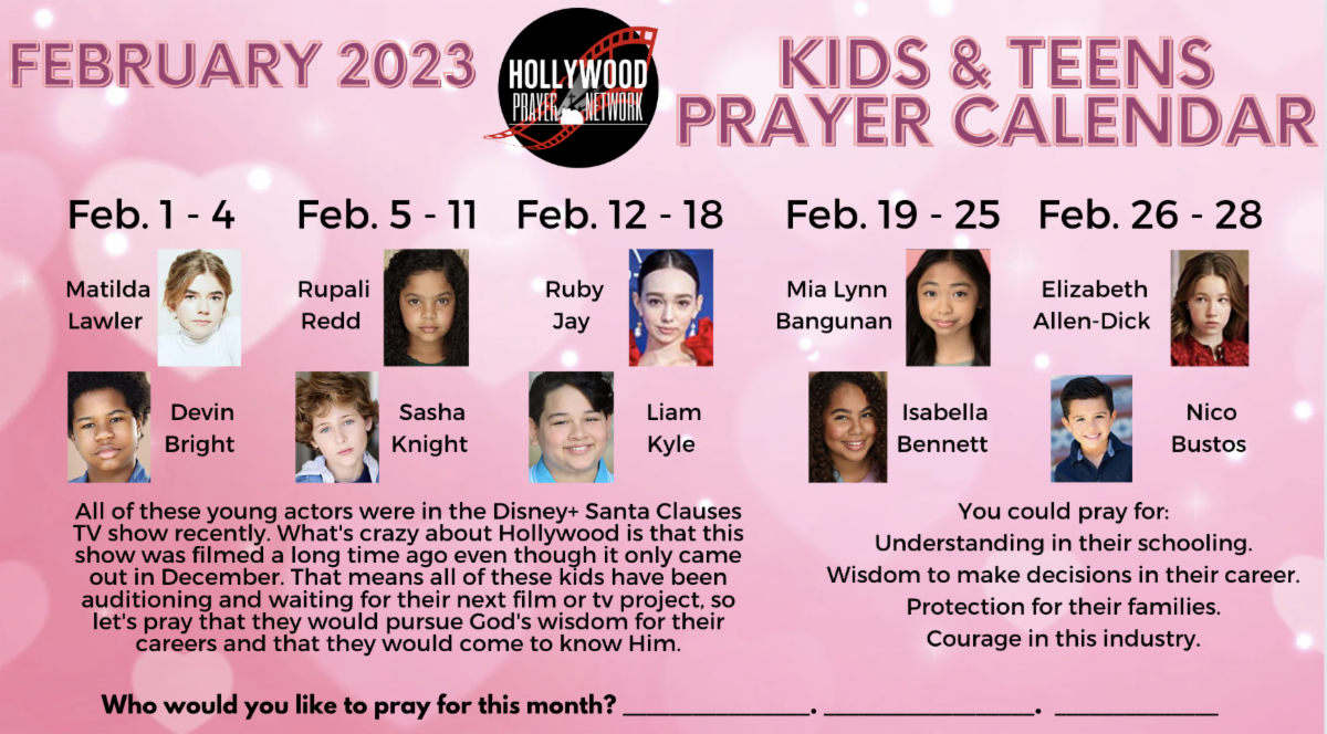 Want to have these prayer Calendar sent to you monthly? Join our HOLLYWOOD KIDS & FAMILIES once monthly mailing list and pray for the hottest young stars in kids and teens entertainment!