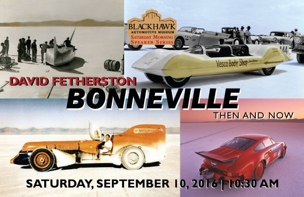 While the Alfa Romeo BAT cars are away from the Blackhawk Museums we have been rotating through the gallery a series of cars for our visitors to enjoy. From Thursday, August 18 through Sunday, September 11, we will have on display the largest automobile to be exhibited at the Blackhawk Museums - the Ab Jenkins 1937 Mormon Meteor III land speed record car. The car is on gracious loan from the Price Museum of Speed in Salt Lake City, UT and will be part of our Speaker Series presentation by David Fetherston on Saturday, Sept 10 - ' Bonneville - Then & Now, the History of Speed Records' We hope that you are able to join us for the Speaker Series presentation, and to visit the museum to see the historic Mormon Meteor III.